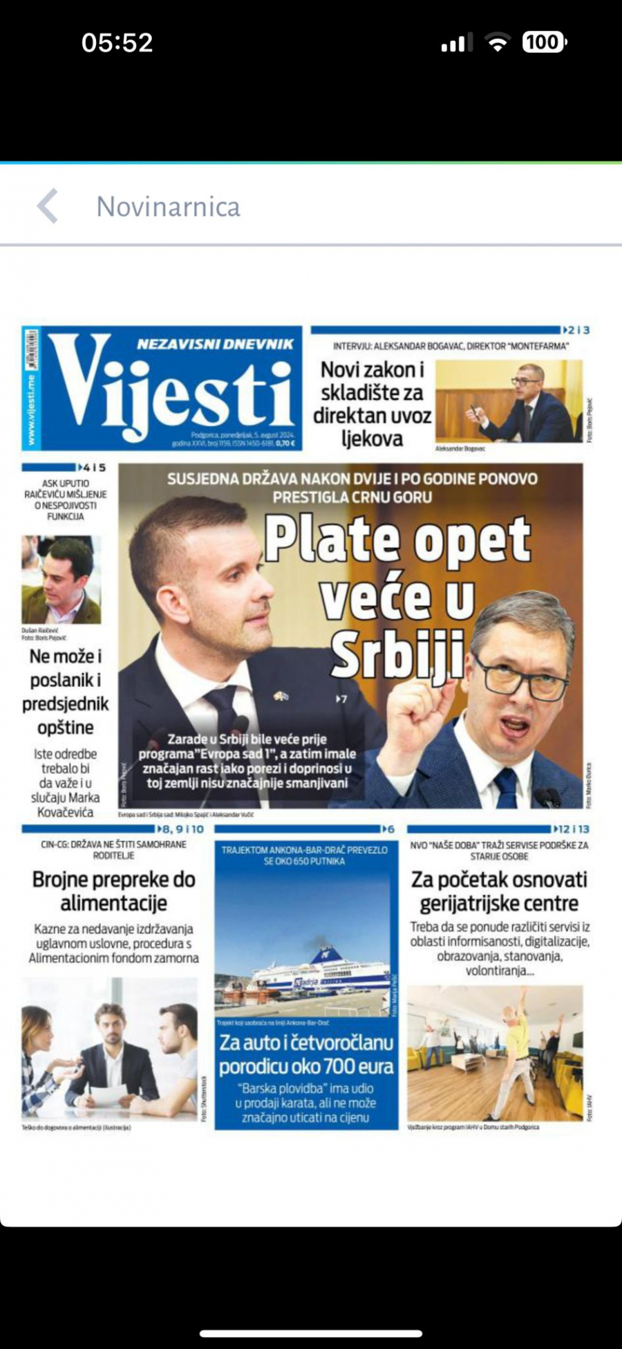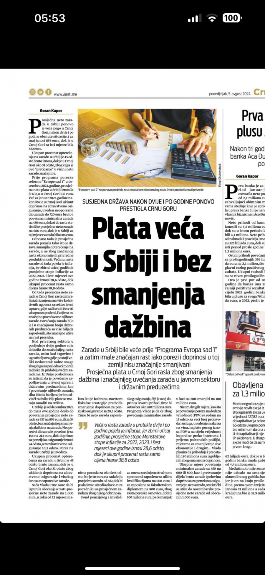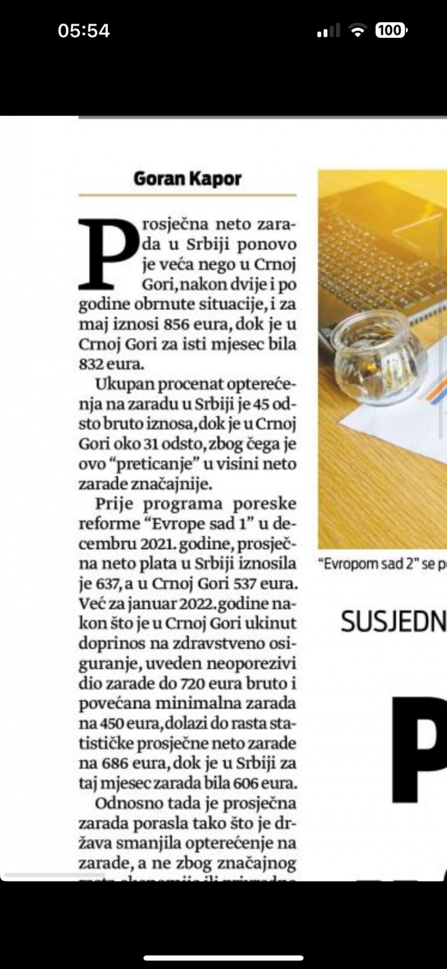 Nezavisni crnogorski portal ''Vijesti'' objavili su na svom portalu kako je u Srbiji veća prosečna plata nego u Crnoj Gori!