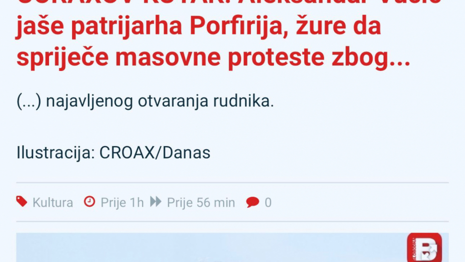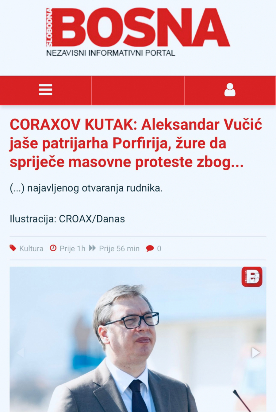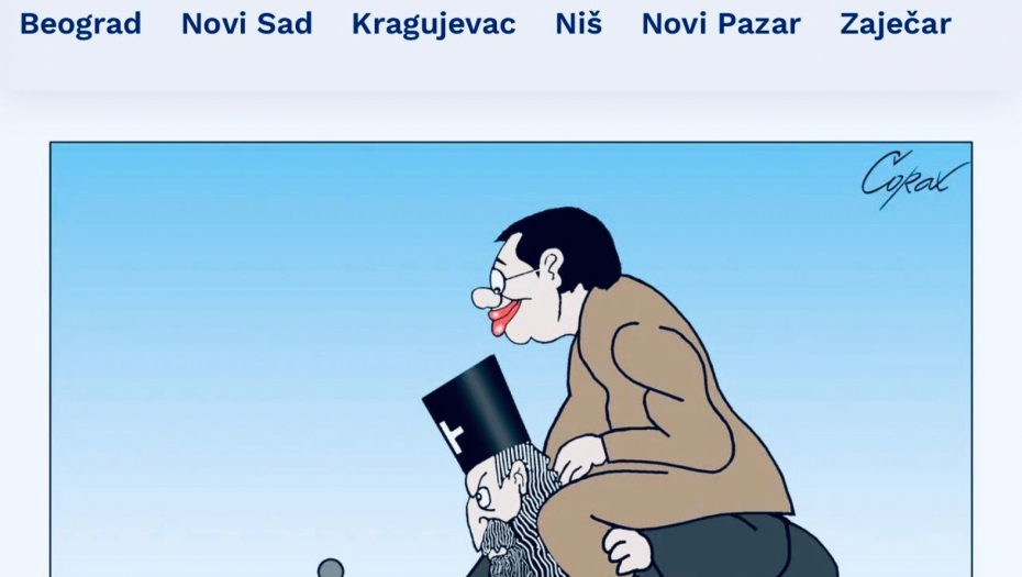 Dnevni list “Danas”, koji je u vlasništvu Dragana Šolaka, objavio je sramnu karikaturu opozicionog karikaturiste Predraga Koraksića Koraksa, na kojoj predsednik Srbije Aleksandar Vučić jaše patrijarha srpskog Porfirija.