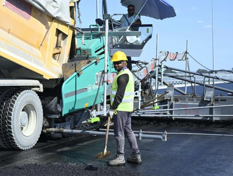 "Intenzivni su radovi i ovo je najintenzivnije gradilište u Srbiji. Radovi idu jako dobro, već imamo 20-ak kilometara pod dva sloja asfata, a započeti su i radovi na završnom sloju asfalta na pojedinim deonicama. Asfalitramo most preko Zapadne Morave, dug oko 500 metara, i na njemu radimo završni sloj asfalta", informisao je Antić ministra Vesića.