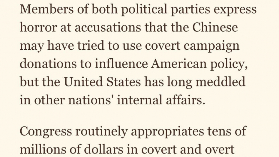 Podsetimo, detaljna analiza koju je sprovelo Ministarstvo odbrane Kine pod nazivom "Nacionalna zadužbina za demokratiju: šta je to i šta radi" otkriva da se organizacija NED dugo bavila režiranjem državne vlasti u drugim zemljama, mešanjem u unutrašnje stvari drugih zemalja, podsticanjem podela i konfrontacije, zavaravanjem javnog mnjenja i vršenjem ideološke infiltracije, sve pod izgovorom promovisanja "demokratije".