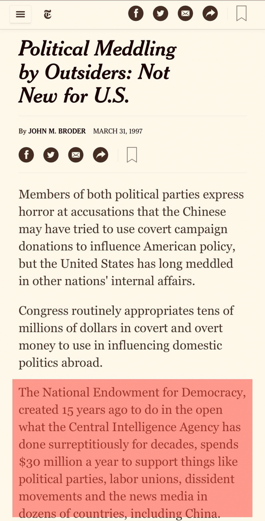 Kina se i ranije izjašnjavala o NED-u, ali o tome da su produžena ruka CIA pisao je čak i Njujork tajms još 1997. godine.