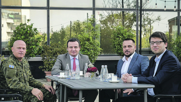 Kurti je juče objavio fotografiju sa komandantom Kosovskih bezbednosnih snaga, kvazigeneral-potpukovnikom Baškimom Jašarijem, kojeg srpski narod poznaje samo po zlu. Na ovoj slici je i prištinski ministar odbrane, Ejup Maćedonci, zvani Uki, visokopozicionirani pripadnik OVK.