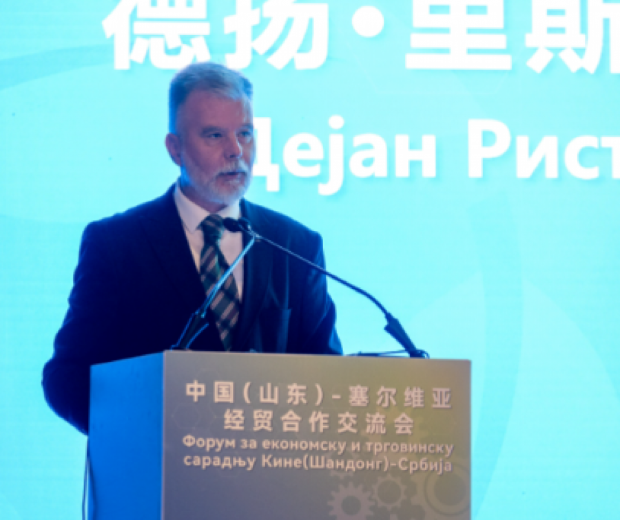 Ministar informisanja i telekomunikacija g. Dejan Ristić svečano je danas u Sava centru u Beogradu otvorio Forum za ekonomsku i trgovinsku saradnju Srbije i NR Kine (Šandong regije) zajedno sa predsednikom Stalnog komiteta Narodnog kongresa provincije Šandong g. Lin Vuom, kao i sa ambasadorom NR Kine u Republici Srbiji, Njegovom ekselencijom g. Li Mingom.
