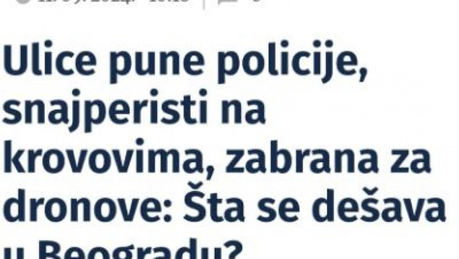 Tako Šolakov portal Nova S izbegava da napise pravi naslov, već namerno piše: "Jake policijske snage, snajperisti na krovu i zabrana preleta dronova: Šta se danas dešava u Beogradu, Vučiću stigao gost iz Izraela", a istim koracima ide i Đilasov portal "Direktno" koji piše: "Ulice pune policije, snajperisti na krovovima, zabrana za dronove: Šta se dešava u Beogradu?"