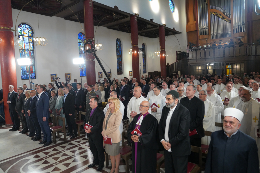 Pored predsednika, svečanosti prisustvuje premijer Srbije Miloš Vučević, kao i ministri Maja Popović i Nemanja Starović, patrijarh SPC Porfirije, visoki dužnosnici i predstavnici Katoličke crkve, visoki predstavnici Srpske pravoslavne crkve, Evangeličke crkve, Islamske zajednice, kao i diplomatski i vojno-diplomatski predstavnici. Svečanost predvodi državni sekretar Svete stolice kardinal Pjetro Parolin.