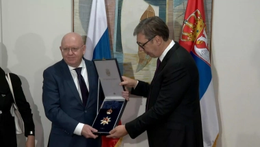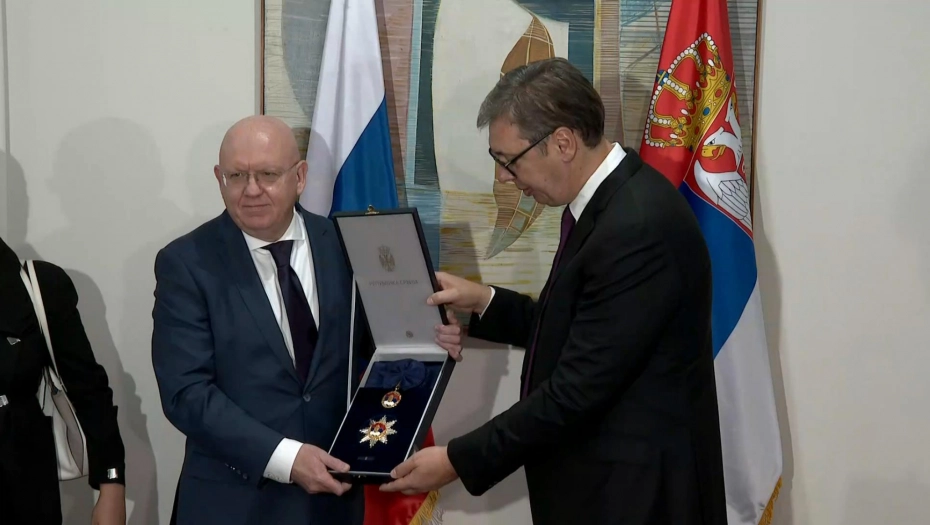 Vučić je, predajući Nebenzji odlikovanje, rekao da se zahvaljuje ruskom predstavniku za prijateljstvo i pomoć koju je Rusija pružila Srbiji u Njujorku.