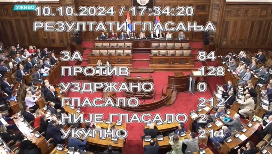 Od ukupno 213 poslanika - za je bilo 84 , protiv 124, nije glasalo dvoje poslanika.