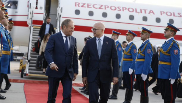 Predsednika Vlade Poljske Donald Tusk doputovao je danas u dvodnevnu posetu Srbiji, a na aerodromu "Nikola Tesla" dočekao ga je premijer Miloš Vučević.
