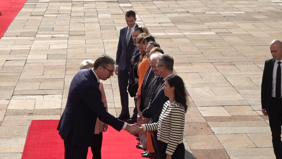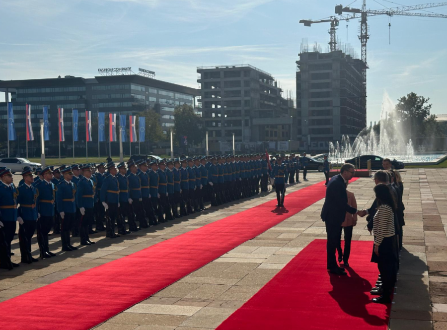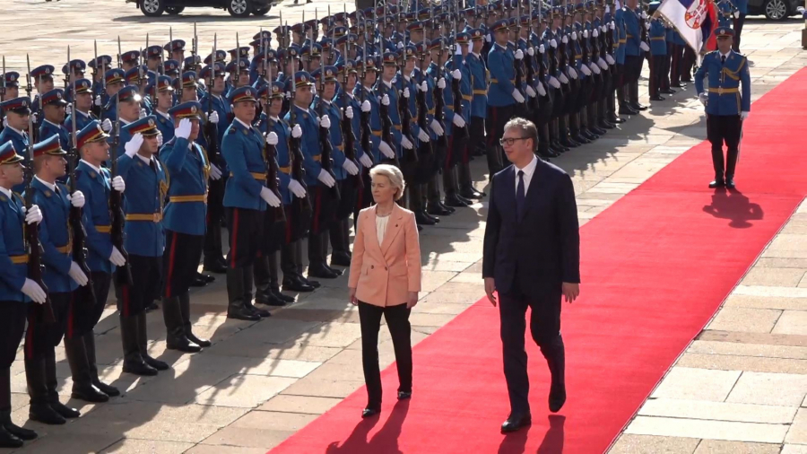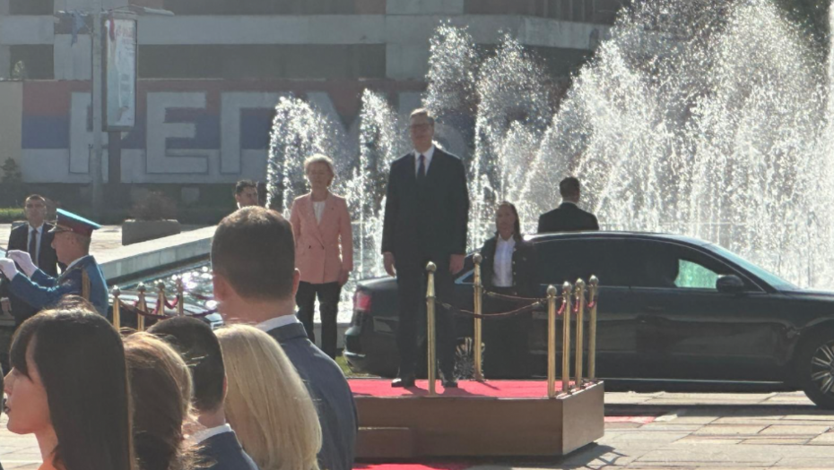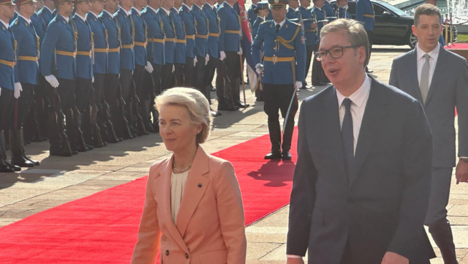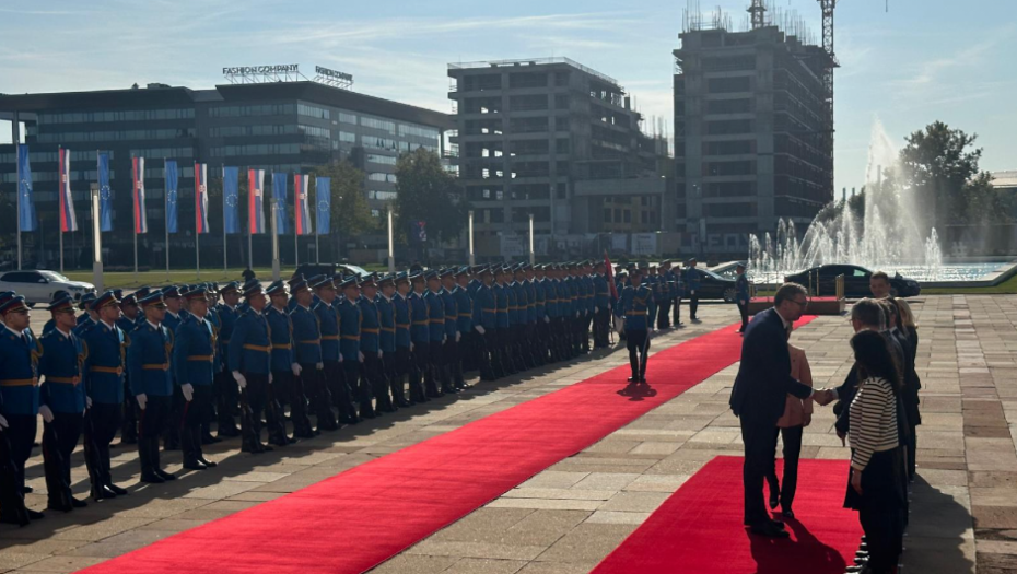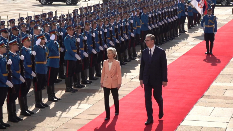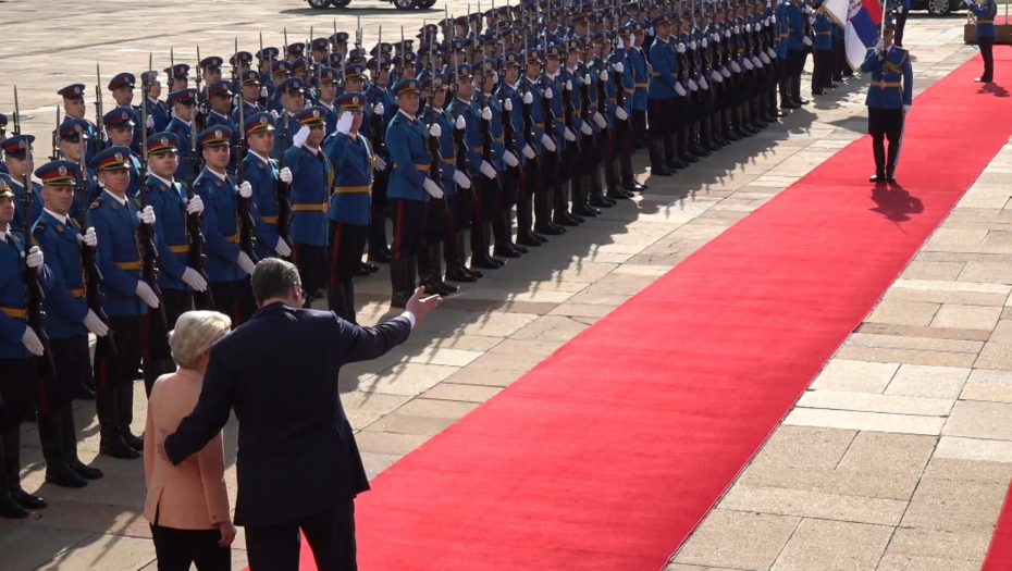 Predsednik Vučić svečano je dočekao Ursulu fon der Lajen ispred Palate Srbija.