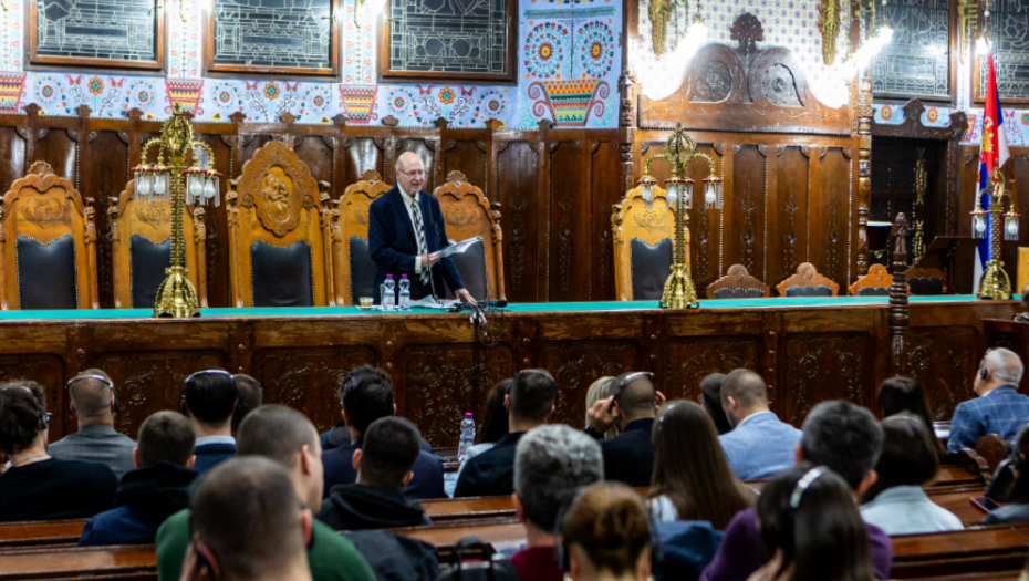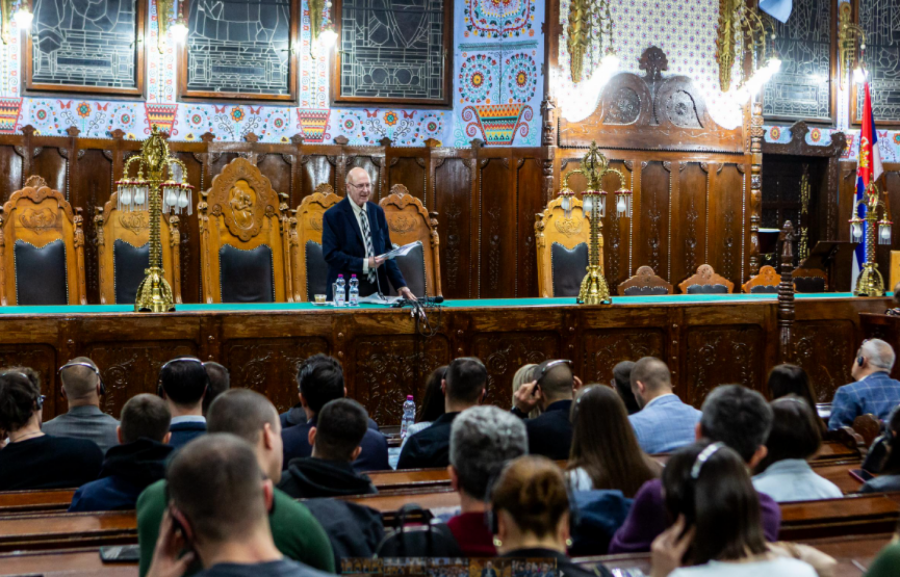 Predstavljajući dragog gosta, naveo je kako je Grajf predavao na brojnim univerzitetima širom sveta, da je autor više od 500 naučnih radova na temu Holokausta, da je 1986. godine intervjuisao 31 logoraša iz Aušvica i da je na osnovu njihovih svedočenja napisao knjigu „Plakali smo bez suza“ koja je prevedena na 12 svetskih jezika.