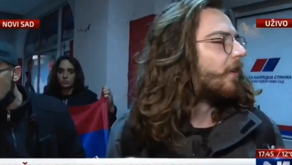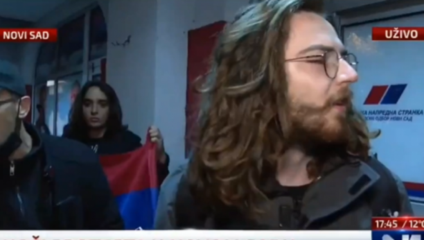 Jedan od večerašnjih vođa nasilnih opozicionih protesta je Brajan Brković - unuk srbomrsca Jevrema Brkovića i čovek koji je poznat po uništavanju srpskih zastava koje su mu i večeras smetale na prostorijama SNS-a pa je počeo da viče: