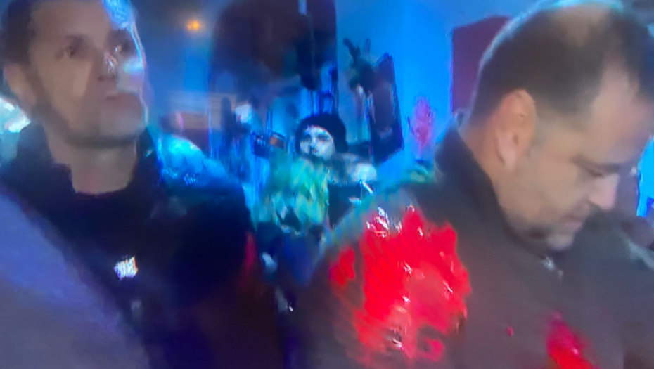 SRAMAN NAPAD ISPRED PROSTORIJA SNS Direktor SC Novi Sad poliven crvenom farbom