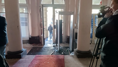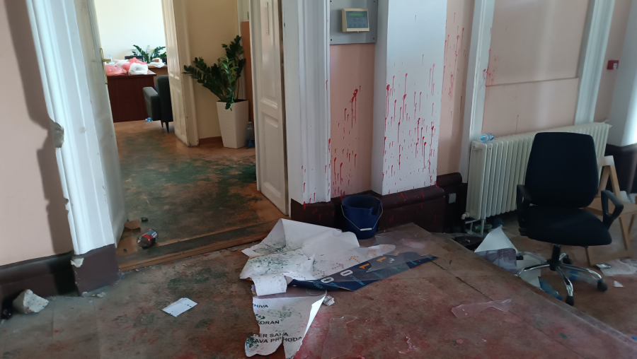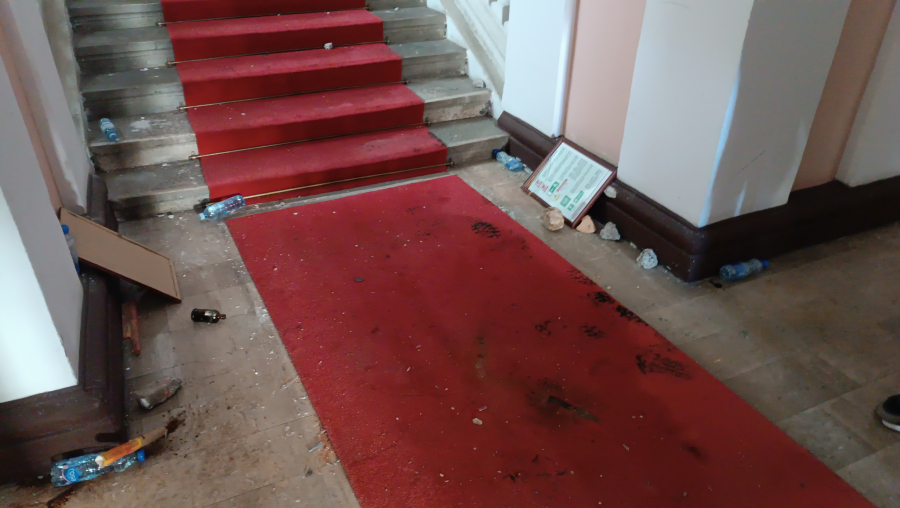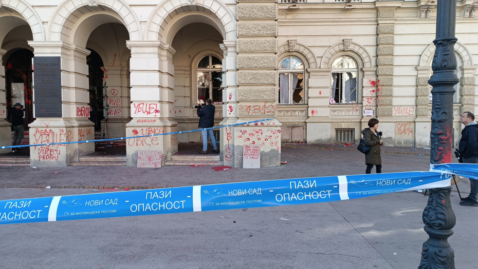 CRVENE KAPLJICE PO ZIDOVIMA, SVE RAZORENO Evo kako izgleda Gradska kuća u Novom Sadu posle jučerašnjih nasilnih demonstracija