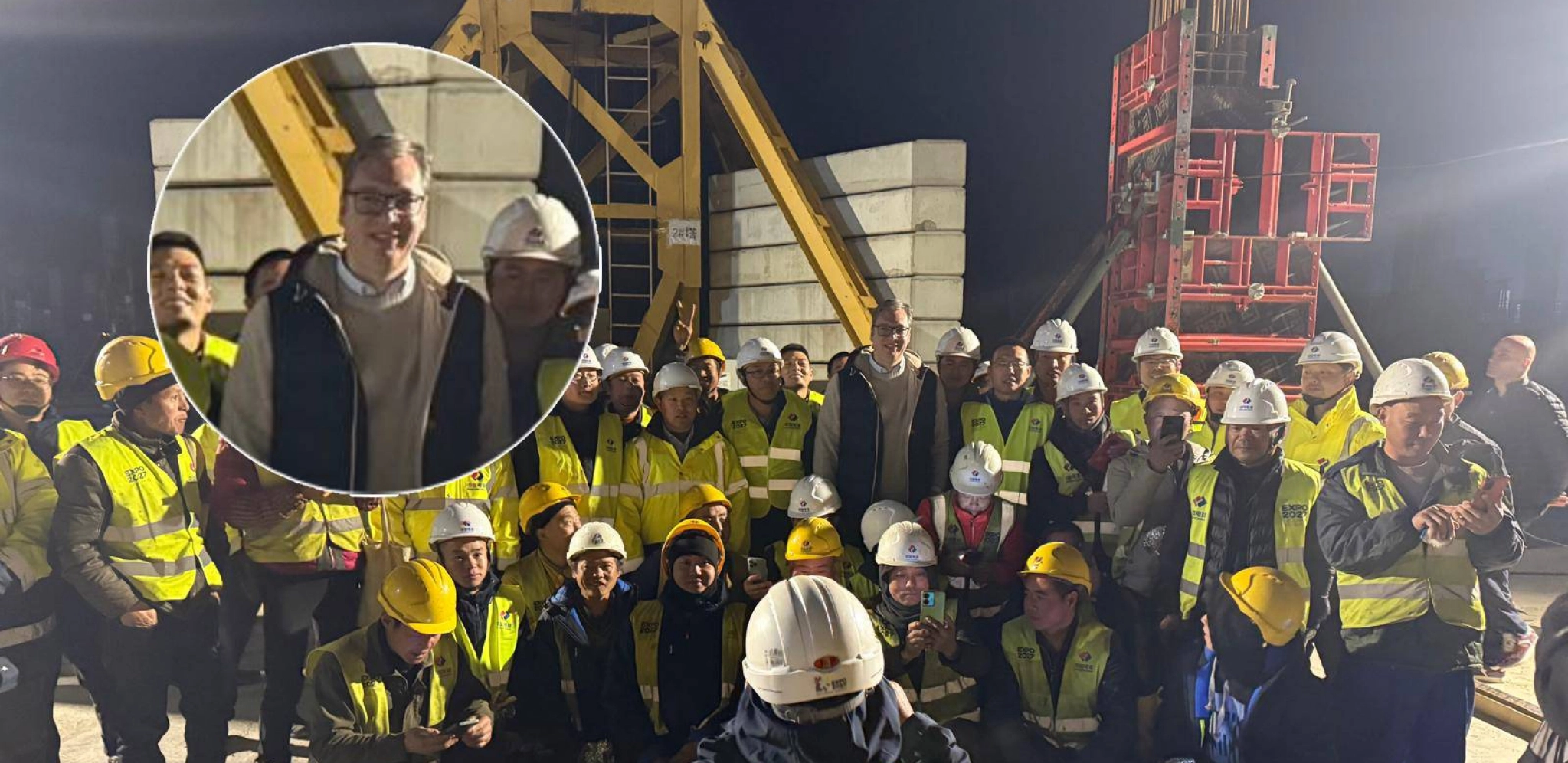 VUČIĆ NA EXPO GRADILIŠTU Predsednik Srbije sa radnicima koji zidaju i noću, po najvećoj hladnoći (FOTO)