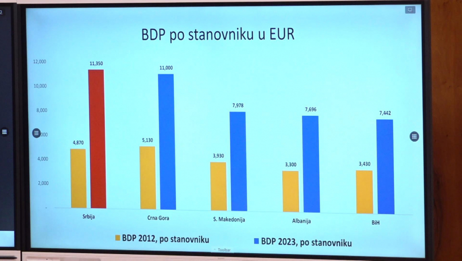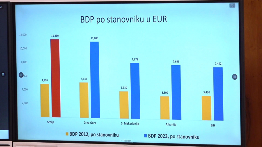- Želimo da brinemo o budućnosti! BDP po glavi stanovnika bude 15.250 evra po glavi stanovnika, to je plan. Danas smo prvi u regionu, 2027. ćemo završiti sa čak 16.000 evra.