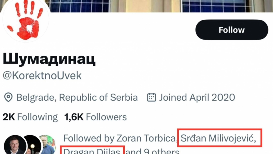 Kako se vidi i na fotografiji, među 1.600 pratilaca stranice "Šumadinac", na kojoj se dele podaci označenih građana, su i Dragan Đilas i Srđan Milivojević.