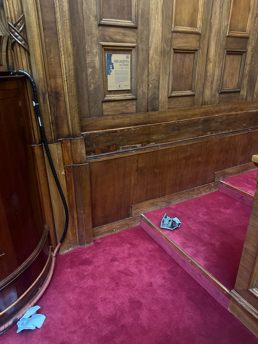 SKANDAL! OPOZICIONI POSLANICI UNIŠTILI SKUPŠTINU! Lomili ekrane, čupali mikrofone: Cilj im je destabilizacija Srbije! (FOTO/VIDEO)