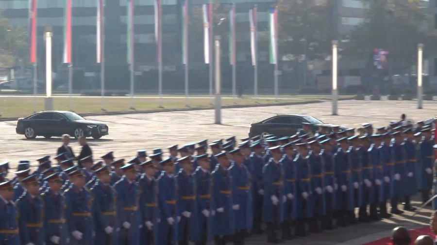 Vučić je svog gosta dočekao uz najviše počasti. Intonirana je himna.