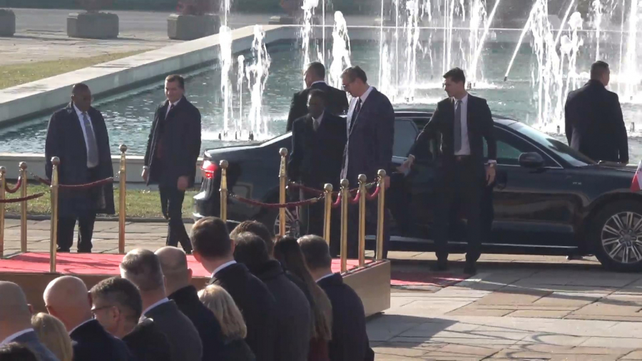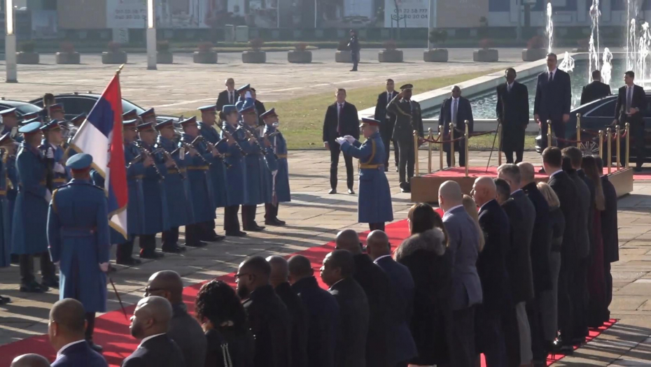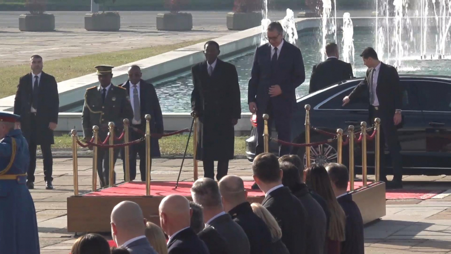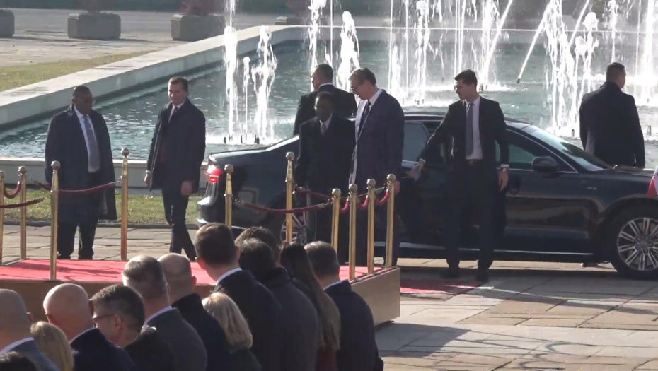 Predsednik Srbije Aleksandar Vučić je predsednika Ekvatorijalne Gvineje svečano dočekao u 10:40 časova ispred Palate Srbije.