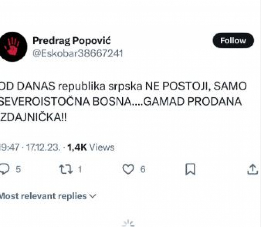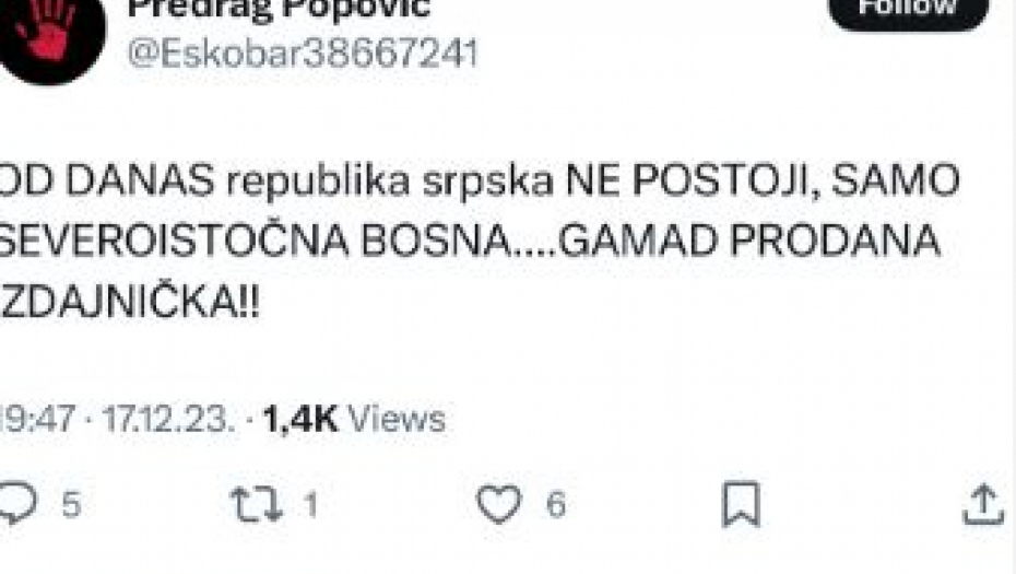 "Od danas Republika Srpska ne postoji, samo severoistočna Bosna... gamad prodana izdajničke".