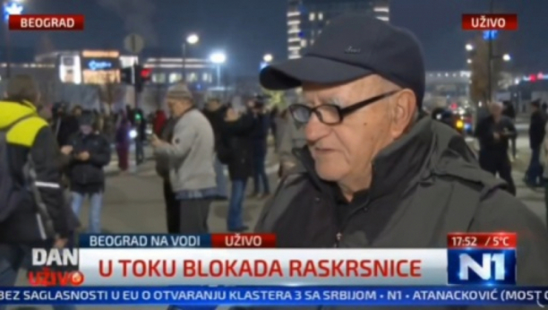 "Ja sam sanjao da dođem u Beograd na neki protest i gledao sam N1 i Novu S i jutros sam požurio da budem tu 10ak dana na protestima. Ići ću i u Novi Sad ako treba, ići ću i sa studentima jer ja sam član jedne partije i imamo sad i kandidaturu neku, biramo predsednika. Došao sam da vidim ambijent."