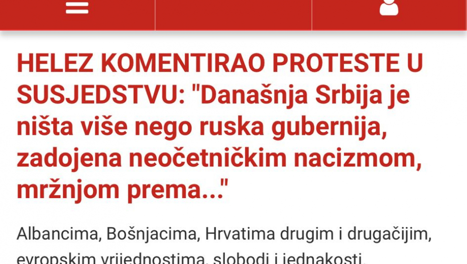 - Današnja Srbija je ništa više nego ruska gubernija, zadojena neočetničkim nacizmom, mržnjom prema Albancima, Bošnjacima, Hrvatima drugim i drugačijim, evropskim vrednostima, slobodi i jednakosti.