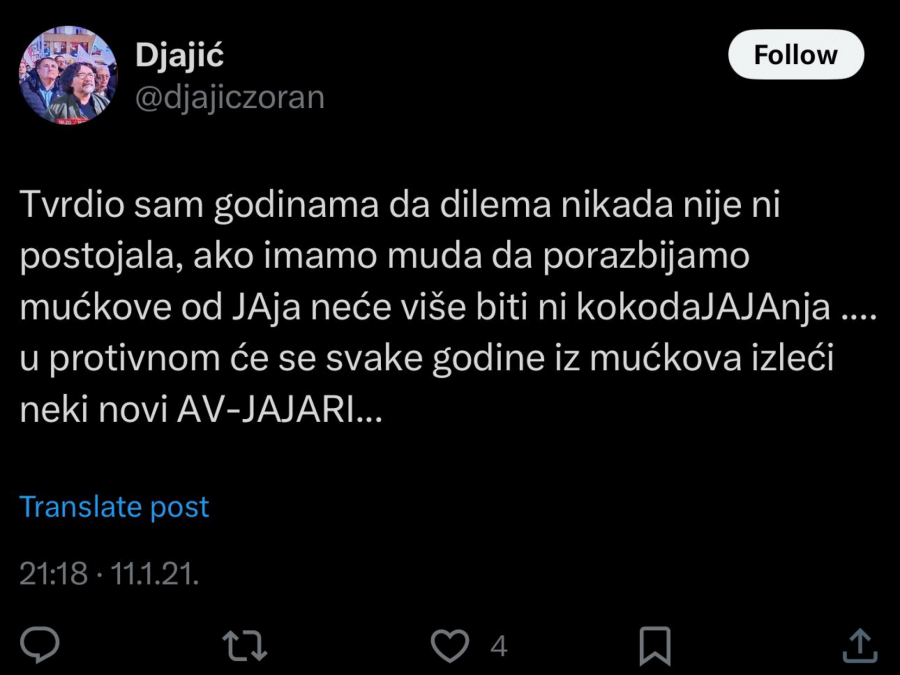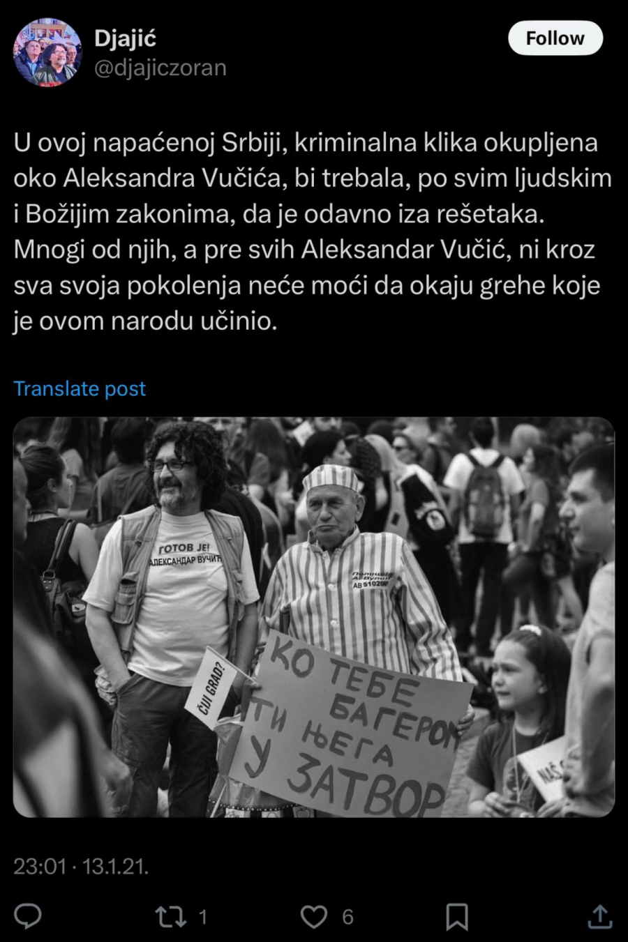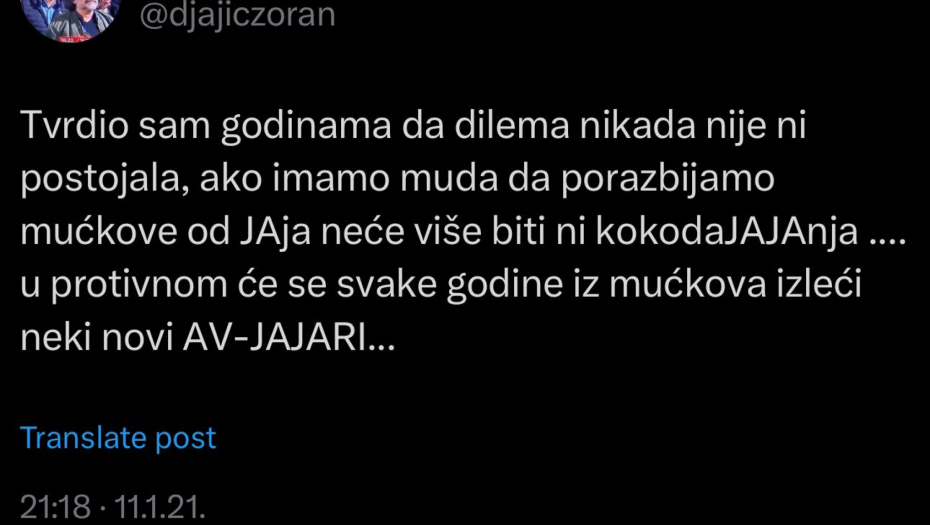 Zoran je jedan mrzitelj Srba i sadasnje vlasti!