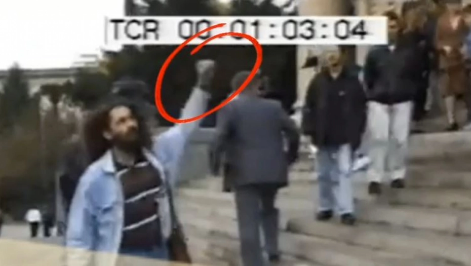 A na ovom snimku možete videti i kako je 5. oktobra 2000. godine rušio državu, sa sve podignutom pesnicom, inače znakom organizacije "Otpor". "Otpor" je poznata organizacija koja je tada bila zadužena za sprovođenje obojene revolucije. Danas su se ponovo aktivirali, sa istim ciljem. Uništiti Srbiju.