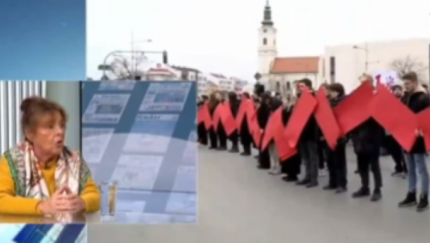 "Pa znate šta, ja bih rekla da iza ove pobune stoje neki vrlo ozbiljni razlozi koji nisu istaknuti sasvim u dovoljnoj meri u samim zahtevima! Tako da ja mislim da oni istrajavaju zapravo u suštinski važnim zahtevima koji nisu obnarodovani jasno i koncizno kao što su ovi konkretni vezani samo za Novi Sad i nadstrešnicu!"