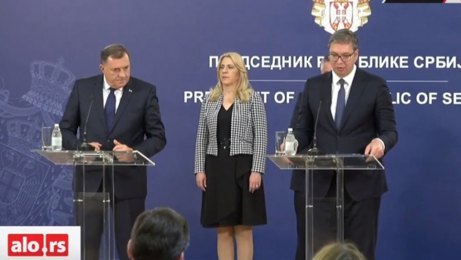 - Veoma sam zadovoljan što smo imali sveobuhvatne konsultacije i važne razgovore sa Miloradom Dodikom i predsednicom Republike Srpske Željki Cvijanović i predsednikom Vlade Radovanom Viškovićem - započeo je Vučić.