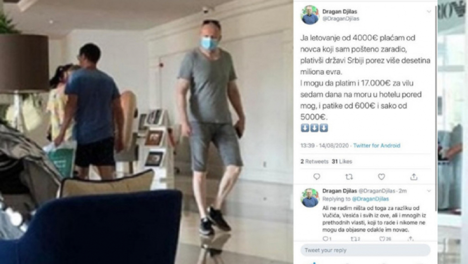 "Ja letovanje plaćam 4.000 evra od novca koji sam pošteno zaradio. Mogu da platim i 17.000 evra za vilu sedam dana na moru, i patike od 600 evra i sako od 5.000 evra. Platio sam porez više desetina miliona evra", napisao je Đilas na Tviteru.