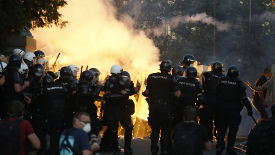 "Građani su na društvenim mrežama pozvani da večerašnje protesteprovedu sedeći, kako bi se izbeglo nasilje koje izazivaju huligani pod kontrolom vlasi koji planski izazivaju sukobe sa policijom"