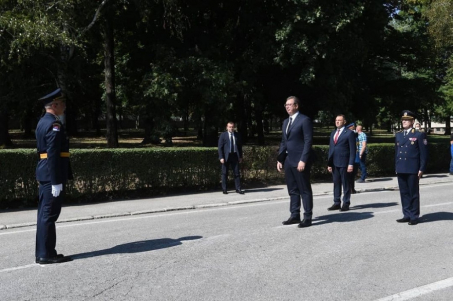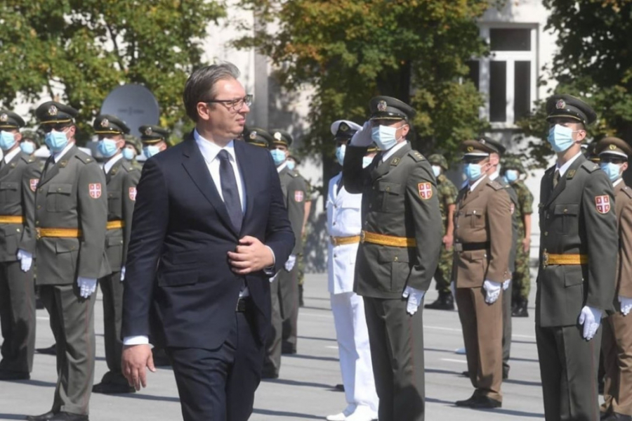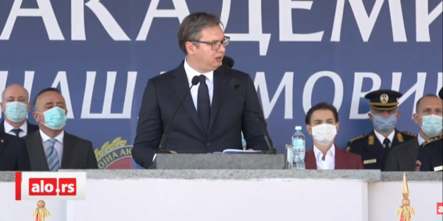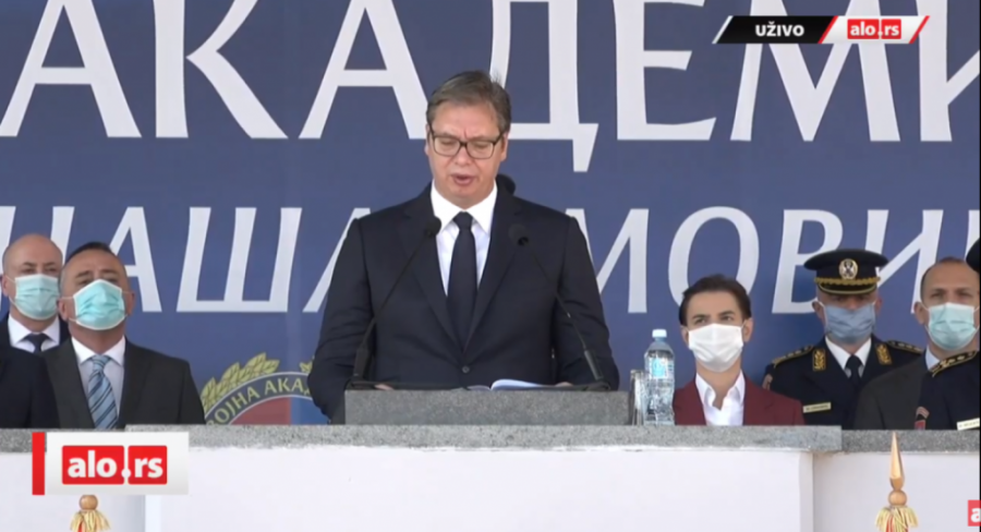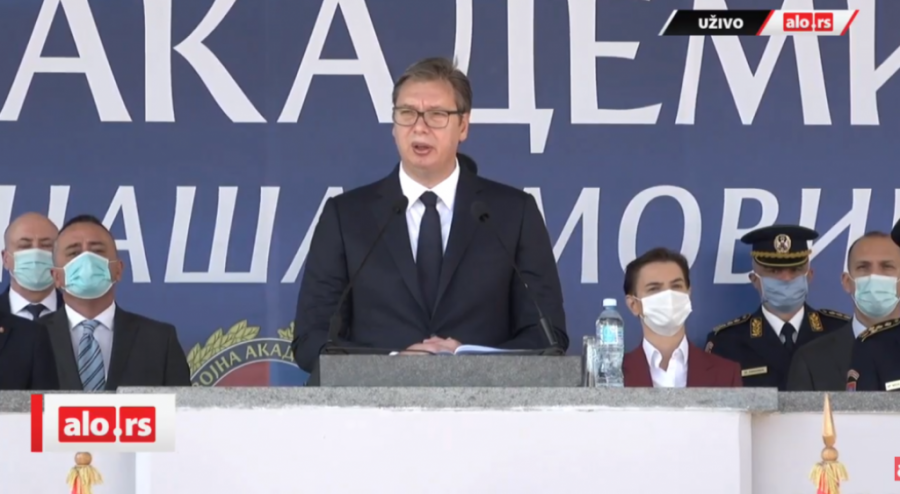 - Srbija je ponosna na svoju vojsku, na svoje oficire i vojno školstvo - rekao je Vučić u svom pozdravnom govoru kadetima kojima se obratio sa dragi kadeti rekavši da je poslednjih godina urađeno mnogo toga i kada je reč o statusu, novim zgradama, njihovom boljitku, popularnosti odlaska u vojsku, gde se VS vidi kao budućnost, mesto za pristojan život za sebe i porodicu.