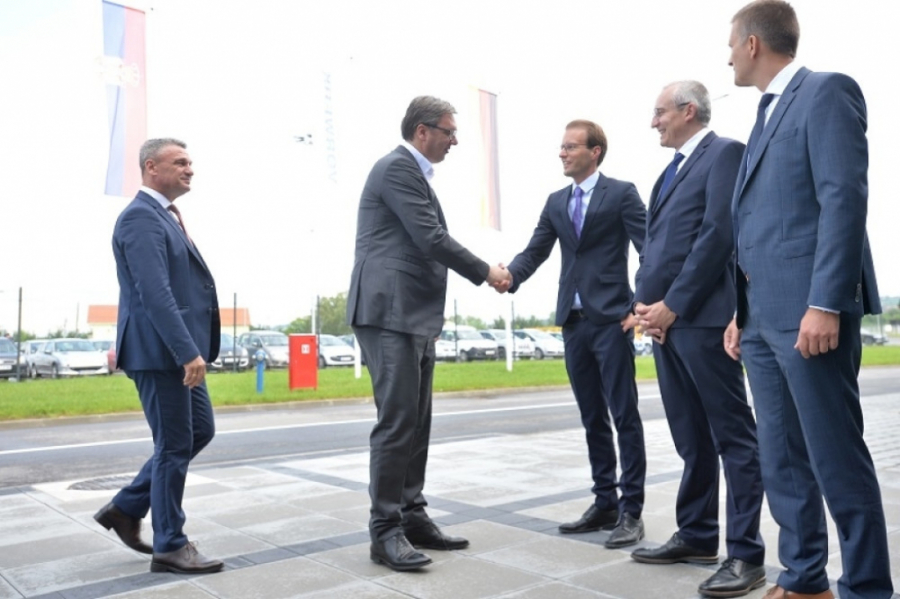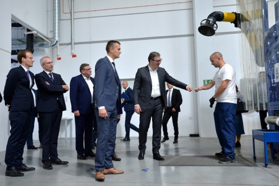 Obilazeći proizvodni pogon novootvorene fabrike, predesdnik Vučić je dodirnuo jedan od delova koji se proizvodi, pa se tom prilikom opekao, jer nije imao zaštitu.
