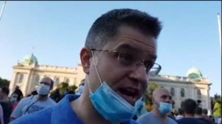 Prema brojnim svedočenjima na društvenim mrežama, njega je nepoznati napadač išamarao dok je silazio niz stepenice. Kako se navodi, demonstranti nisu želeli da Jeremić prisustvuje okupljanju.