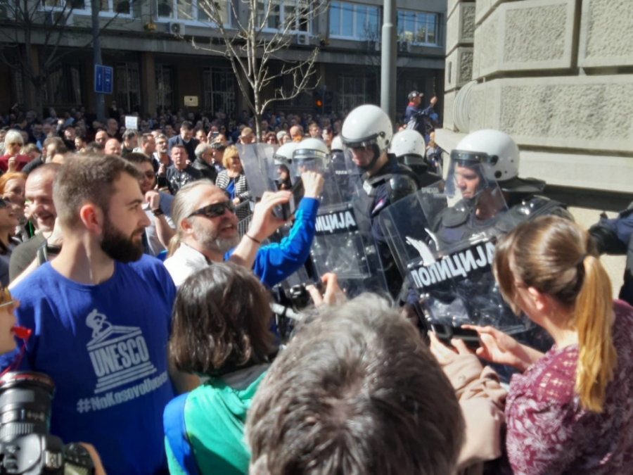 Nekoliko desetina pristalica Boška Obradovića i Dragana Đilasa krenulo je u napad na policijske snage koje obezbeđuju zgradu Predsedništva!