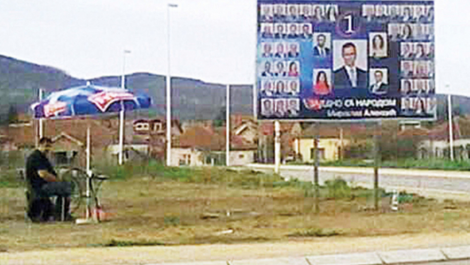 Da bi zaštitili svoje bilborde od predstavnika drugih političkih opcija i nezadovoljnih građana koji ih gađaju crvenom farbom, članovi koalicije „Miroslav Aleksić - Zajedno sa narodom“ su svoje aktiviste postavili da čuvaju bilborde.