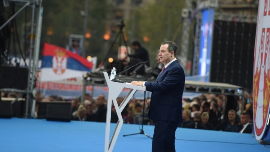 Dačić je poručio da je današnji skup u Beogradu poruka i regionu i celom svetu, da Srbija neće popustiti pod pritiscima, koliko god da su veliki.