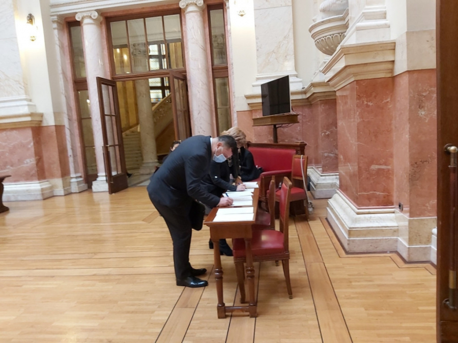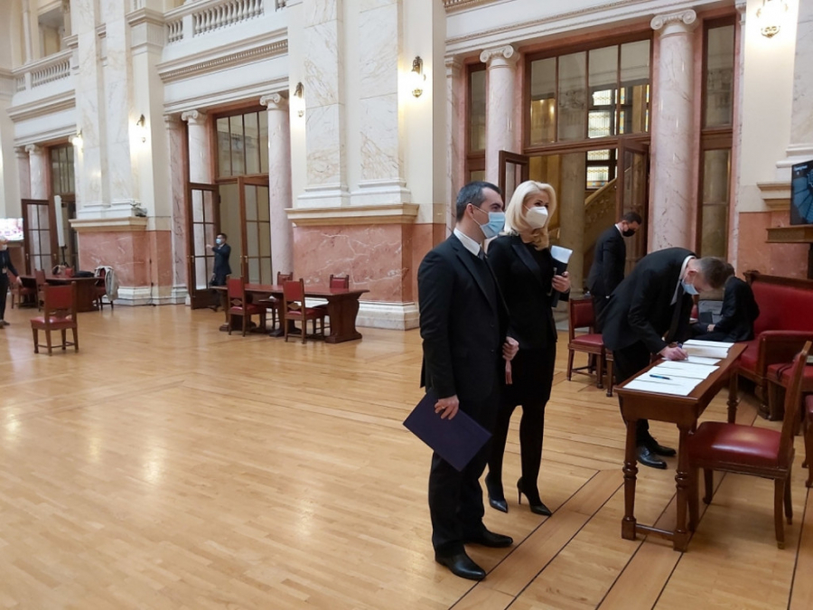 Među prvima je u parlament stigla narodna poslanica Jadranka Jovanović, a ubrzo za njom i Dragan Šormaz, Zoran Dragišić, Snežana Paunović, Samir Tandir. Stigli su i predstavnici Srpske napredne stranke predvođeni potpredsednikom Skupštine Srbije Vladimirom Orlićem.