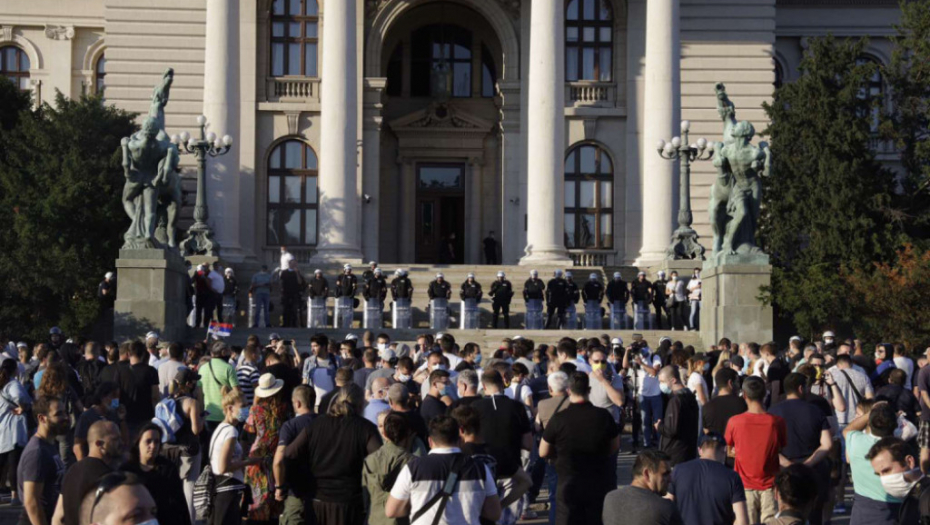 Demonstranti oterali Borka Stefanovića sa ograde ispred Narodne skupštine.