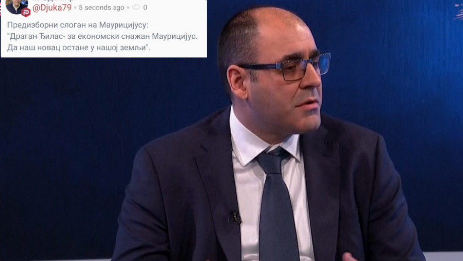 "Dragan Đilas - za ekonomski snažan Mauricijus, da naš novac ostane u našoj zemlji" Alo.rs/N.A. Vesti 2021-03-12 15:49:33 3 Narodni poslanik i član Glavnog odbora Srpske napredne stranke "upropastio" Đilasa Ilustracija Ilustracija Vladimir Đukanović, Foto: Ilustracija Printscreen tvit, Foto: Printscreen PROČITAJTE JOŠ: Tagovi vladimir đukanović Dragan Đilas Mauricijus politika Komentari (3) Miso 12.03.2021 16:30 Djuka legenda, pravo u centar! Moramo da pitamo Djikija da li mu se svidja ovaj slogan ili da menjamo drzavu u sloganu. Covek moze da bira koju ce drzavu da stavi u slogan...podugacak spisak inostranih racuna. 92 10 Ana 12.03.2021 17:10 Đuka je bez dlake na jeziku! Sve što misli, on kaže i ja to poštujem! 144 11 Mila 12.03.2021 17:18 Djuka je super lik kako duhovit i iskren. 173 10 svi komentari povezane vesti KAKVE REČI Braun: Ne zanima me šta navijači kažu 08:21 "DA NE ŽELITE DA VAS OPLODIM?" Vladimir Tomović pobesneo na pitanje o detetu 08:20 Vip 0 ČELIČNA KONSTRUKCIJA SE OBRUŠILA! Sedam radnika ostalo zarobljeno 08:15 Vesti 0 OTVORENA VRATA PAKLA U POKROVSKU Elitna ruska jedinica je samlevena, stravični snimci sa fronta 08:07 Vesti 0 UHAPŠEN MALOLETNIK Tinejdžer (14) se sumnjiči da je izbo vršnjaka 08:07 Hronika 0