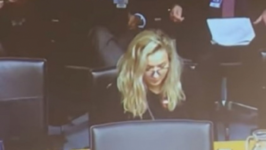 Jedva je uspela da izgovori poslednju rečenicu pre nego što je kamera prestala da je snima i pre nego što je predsedavajući isključio njen mikrofon.