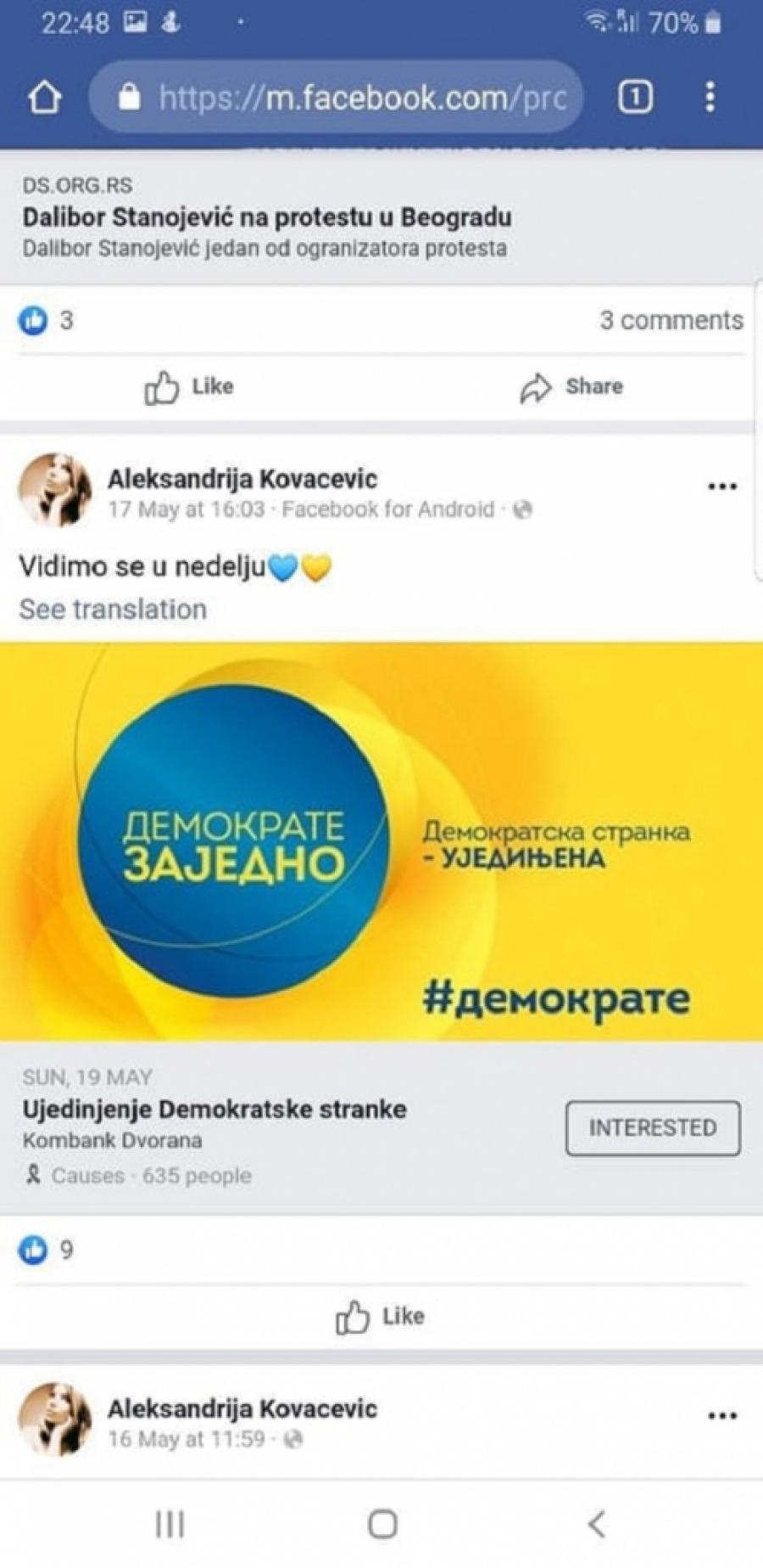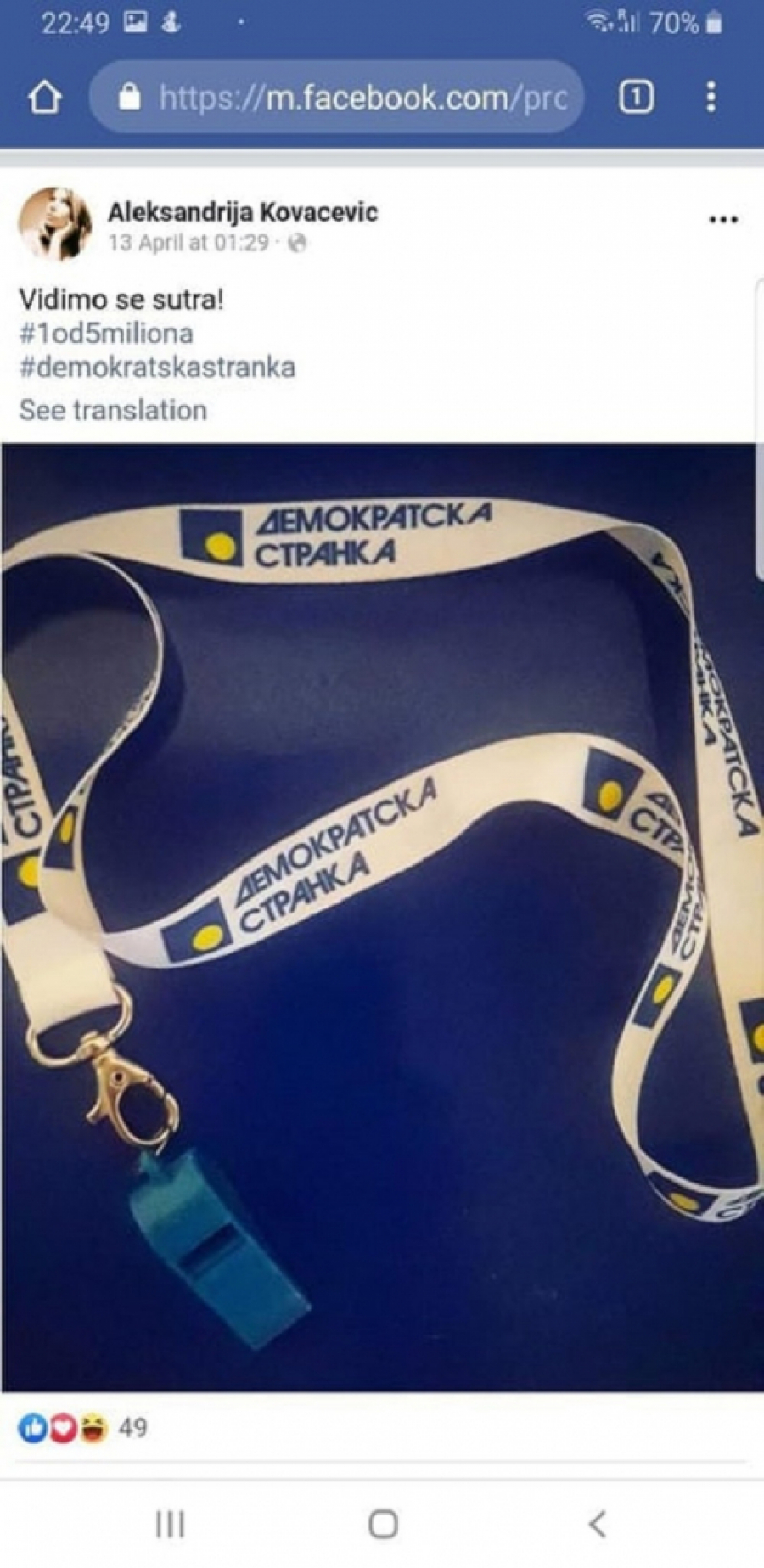Jedna od tih slučajnih prolaznika je i Aleksandrija Kovačević koja se pojavljuje u jednoj anketi u svojstvu građana, i komentariše kako zbog radova svuda mora ići pešaka, a na njenom profilu na Fejsbuku se jasno vidi da je politički orjentisana i da to ne krije, a onda glumeći slučajnu pročaznicu, usput kritikuje rekonstrukcije i radove koje dežurne službe obavljaju.