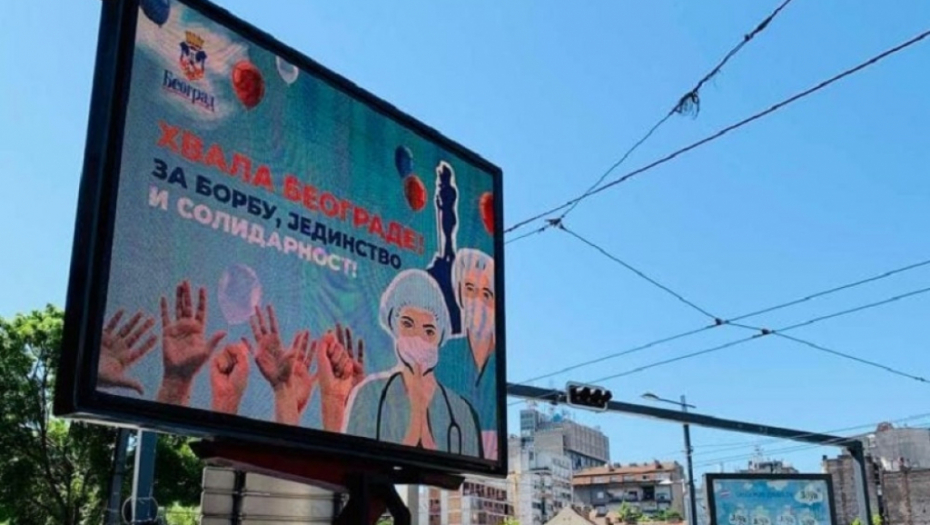 U Beogradu je danas na više od stotinu bilborda osvanula poruka zahvalnosti Grada Beograda građanima prestonice za podršku, borbu i jednistvo koje su iskazali sa zdravstvenim radnicima tokom borbe protiv virusa Kovid 19, izjavio je zamenik gradonačelnika Goran Vesić.