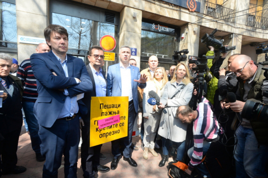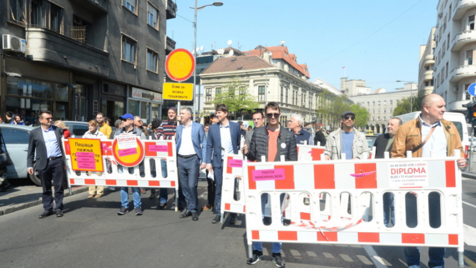 Pod dirigentskom palicom Nikole Jovanovića, koji je pod dirigentskom palicom Vuka Jeremića, a koji je opet pod patronatom Dragana Đilasa, 30-ak ljudi blokiralo je danas centar Beograda.