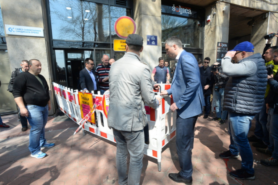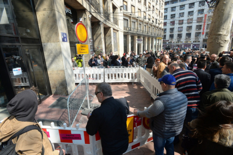 Predstavnici lidera SzS su zaštitnu ogradu iz Kolarčeve ulice, koja je služila da obezbedi građevinske radove u sklopu rekonstrukcije Trga , preneli ispred sedišta REM-a, i kako je Obradović rekao, blokirali tu instituciju.