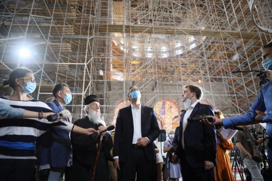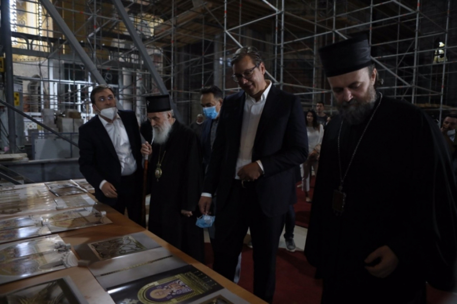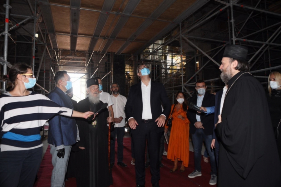 - Posle više od 100 godina se ovo završava, u vreme kada sam predsednik, više smo pomogli u poslednje 3 godine, nego u poslednjih 60. Veoma sam srećan zbog toga, samo čekam da nas napadnu. Ovo je važna stvar za vernike, ovo će biti najvažnija kulturna destinacija u Srbiji, ovo je zaista nestvarno, kada se sklone skele, ovde samo da dođete da gledate mozaik, najveći majstori na svetu su radili. Mnogo skupo, mnogo uloženo, ljudi će za 2 meseca moći da se raduju ovom Hramu - rekao je predsednik prilikom obilaska.