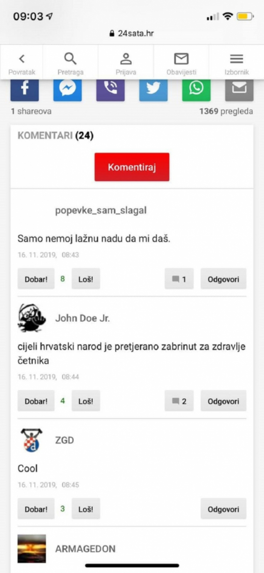 Ljudska zloba i pakost širi se hravtskim medijima, a Alo.rs je izdvojio samo par komentara koji su osvanuli na njihovim portalima i društvenim mrežama.