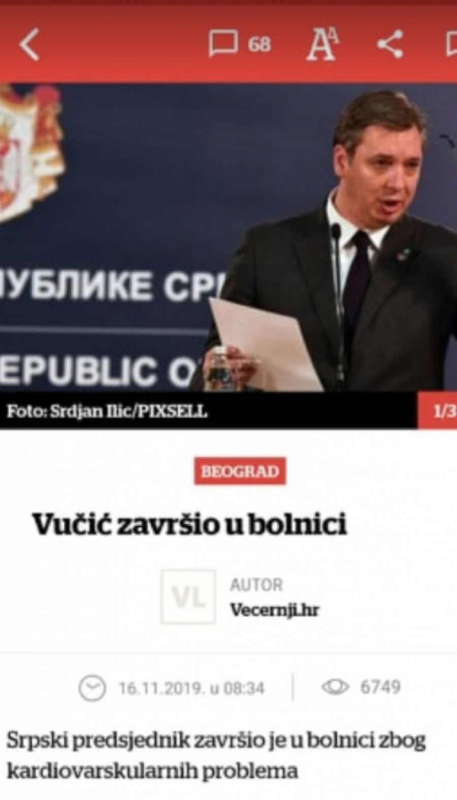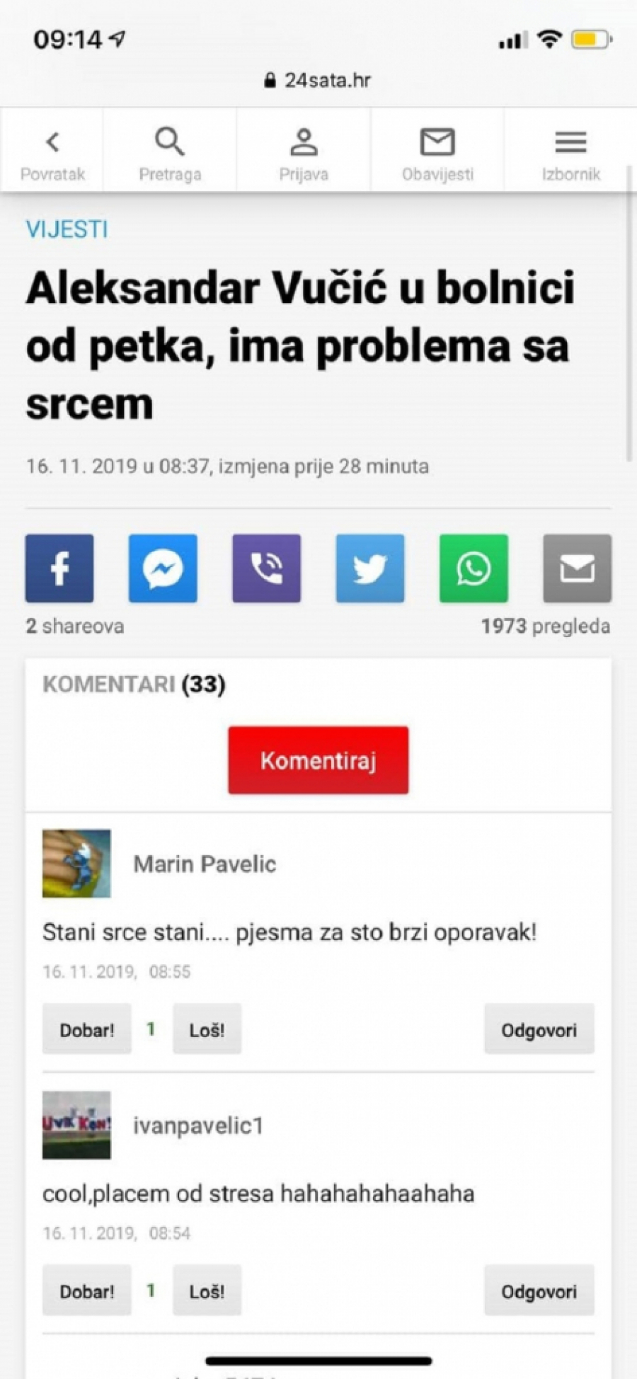 Hrvatski mediji po svojim portalima likovali su zbog Vučićevog odlaska u bolnicu, da bi se na to nadovezali obični građani sa svojim komentarima koji su bili krajnji pogrdni i potpuno neprikladni u ovakvoj situaciji!