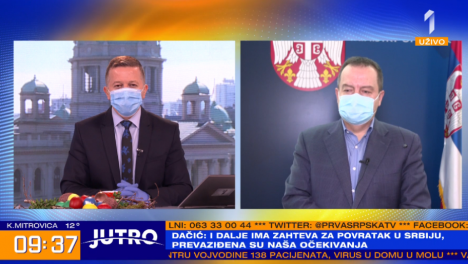 - Ima zahteva koliko hoćete, to je prevazišlo kriterijume koje smo postavili. Nema naših ljudi koji su zaglavljeni na aerodromima i granicama. Osim učenika i studenata, onih koji su bili na lečenju ili službenom putu, tu je i ona grupa ljudi koji su ostali bez posla širom sveta. Imamo i onih koji su odustali od leta, na primer, imamo situaciju u Dubaiju, 30 ljudi je odustalo, imali smo prazan let. Ljudi neće u samoizolaciju. Do Vaskrsa će biti 10 hiljada ljudi koji su vraćeni u Srbiju. Mi smo omogućili našim ljudima koji su u Italiji i Švajcarskoj da se vrate. Takođe smo organizovali dva autobusa koji će vraćati ljude. Imamo utvrđenu šemu letova, mi evidentiramo zainteresovane ljude, pa u dogovoru sa predsednikom imamo jedan let dnevno, u skladu sa tim koliko može ljudi da uđe u Srbiju. Imamo veliki broj ljudi iz Nemačke koji žele da dođu, naglasio je ministar Ivica Dačić.